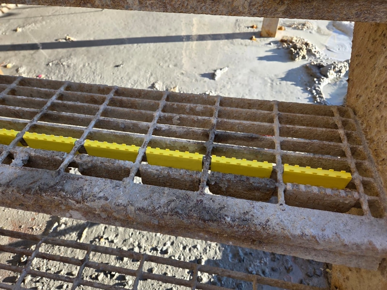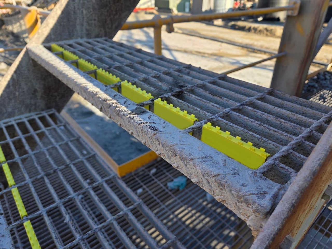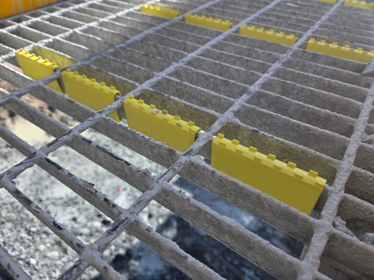 Unlike inferior fibreglass stair nosings, the special composite used for this non-slip cleat will not crack or release hazardous splinters that could inflict bodily harm. Its bolt/screw-free installation means less risk of foreign objects entering machinery and ingredients. No Power Tools, NO Hot-work Permits Needed! Instantly transform your steel grating. Titan’s Anti-Slip Treads offer years of reliable performance.